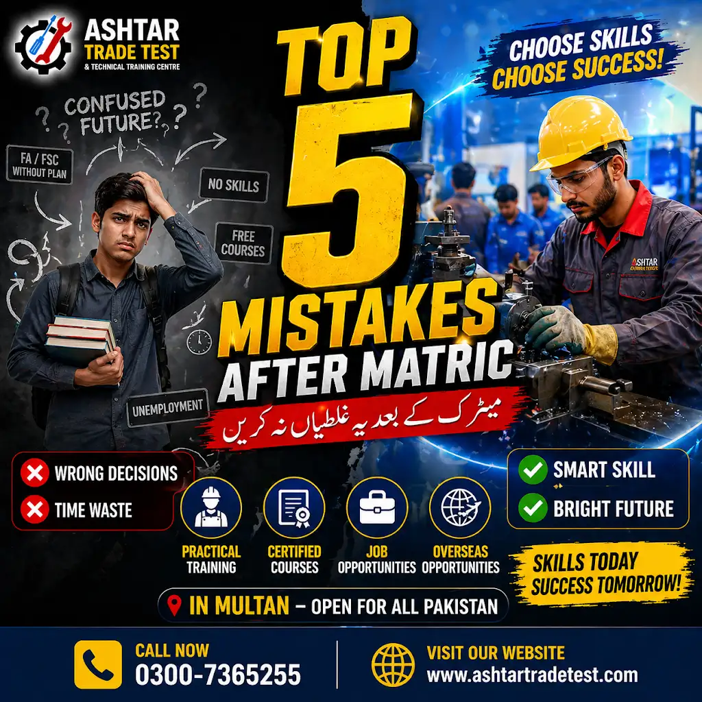 Results are out, but what next? Avoid the common mistakes after matric that thousands of students make every year in Pakistan. Your global success starts with a technical training after matric.