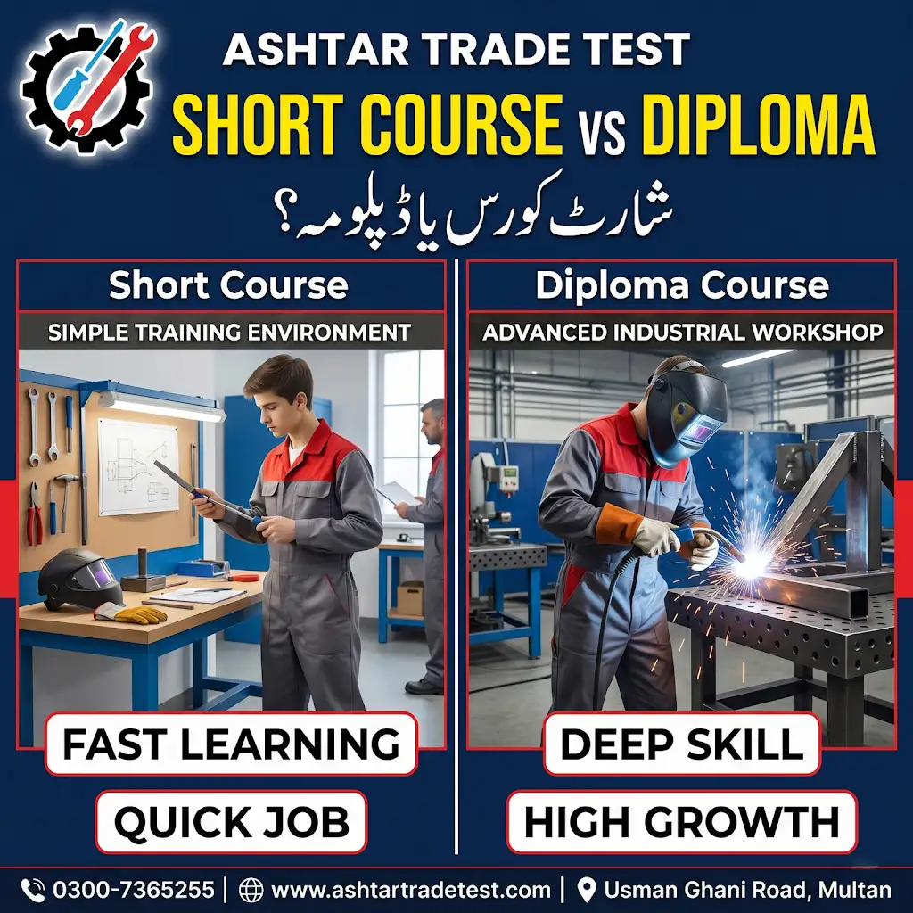 Many students in Multan and Southern Punjab face a common dilemma: "Should I take a short technical course for quick employment, or invest time in a full technical diploma?" Both options at Ashtar Trade Test & Technical Training Centre are designed to lead to high-paying careers, but the right choice depends on your personal goals, timeline, and budget.