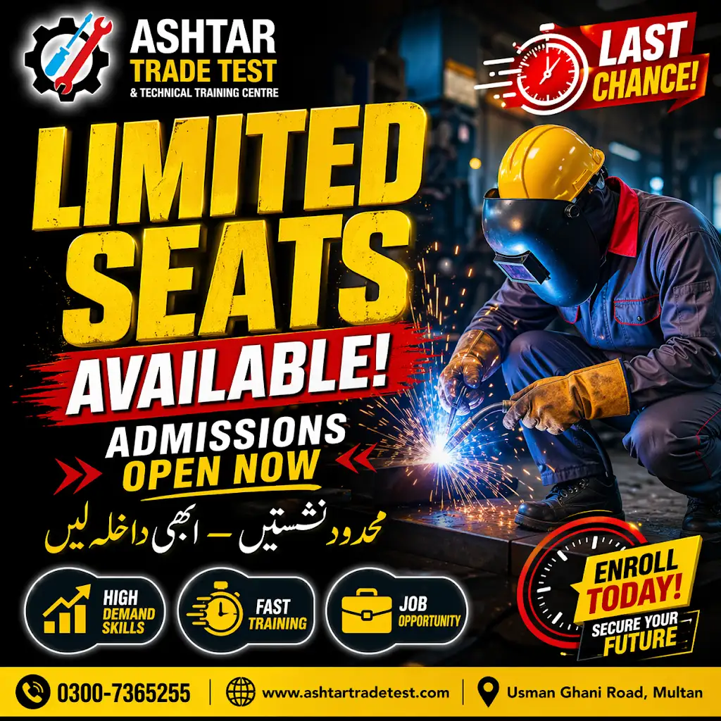 Join Multan's #1 Technical Training Institute. 90% Practical Work, Trade Test Preparation & Guaranteed Overseas Job Support.